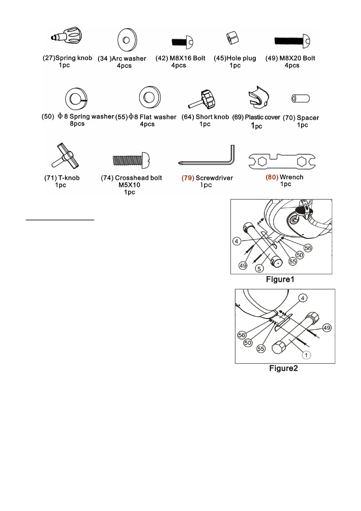Spring washer (50) and Φ8 flat washer (55). (Refer figure 2)