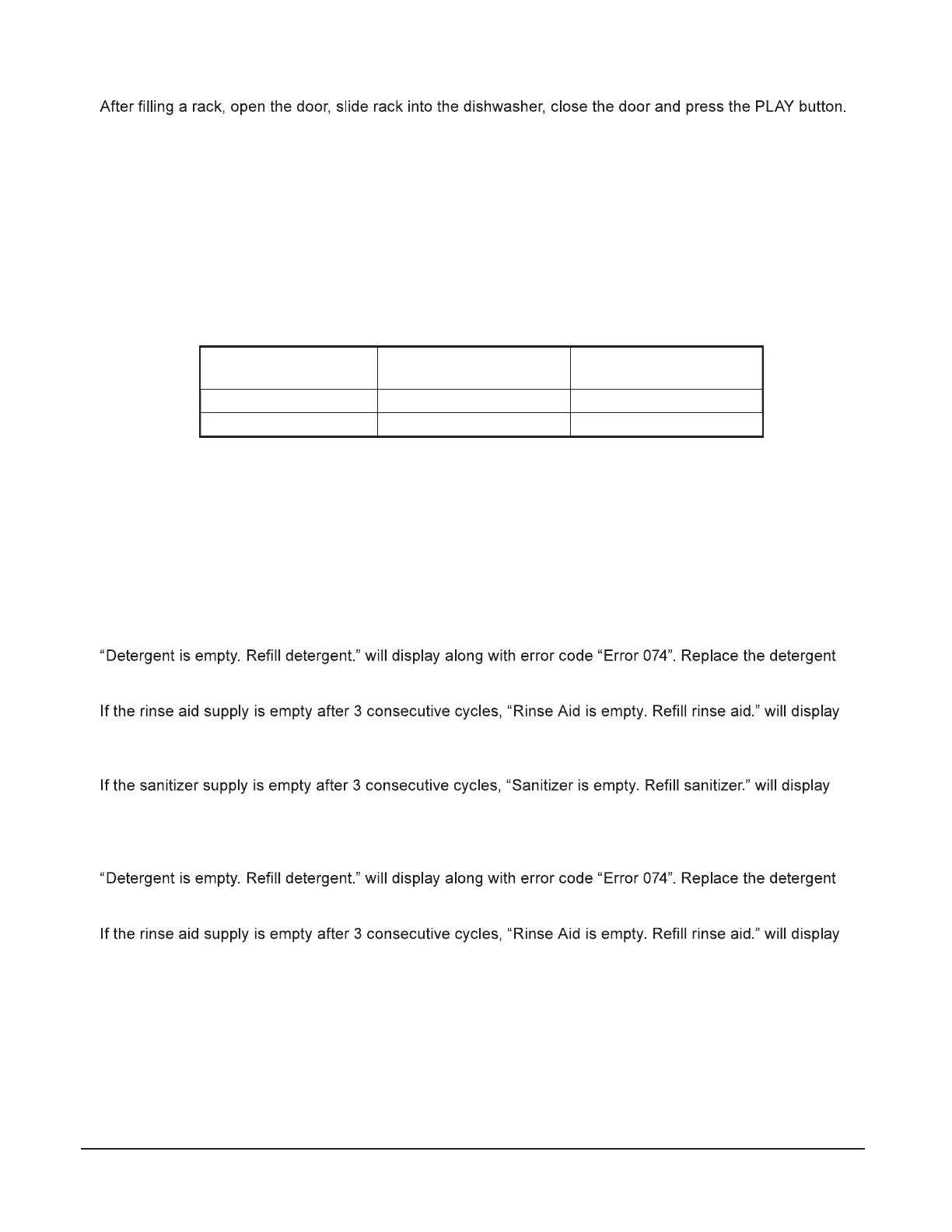 along with error code “Error 075”. Replace the rinse aid supply and press ENTER to clear the error and prime