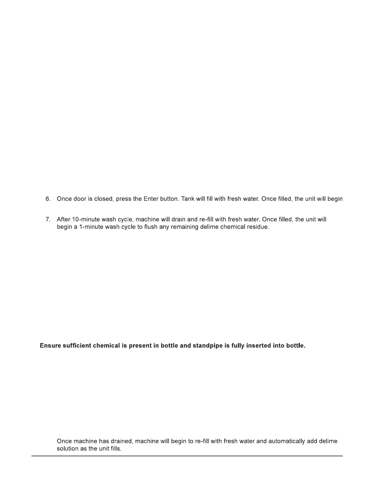 5. Close machine door and press the Enter button. DELIME will be displayed and machine will drain.