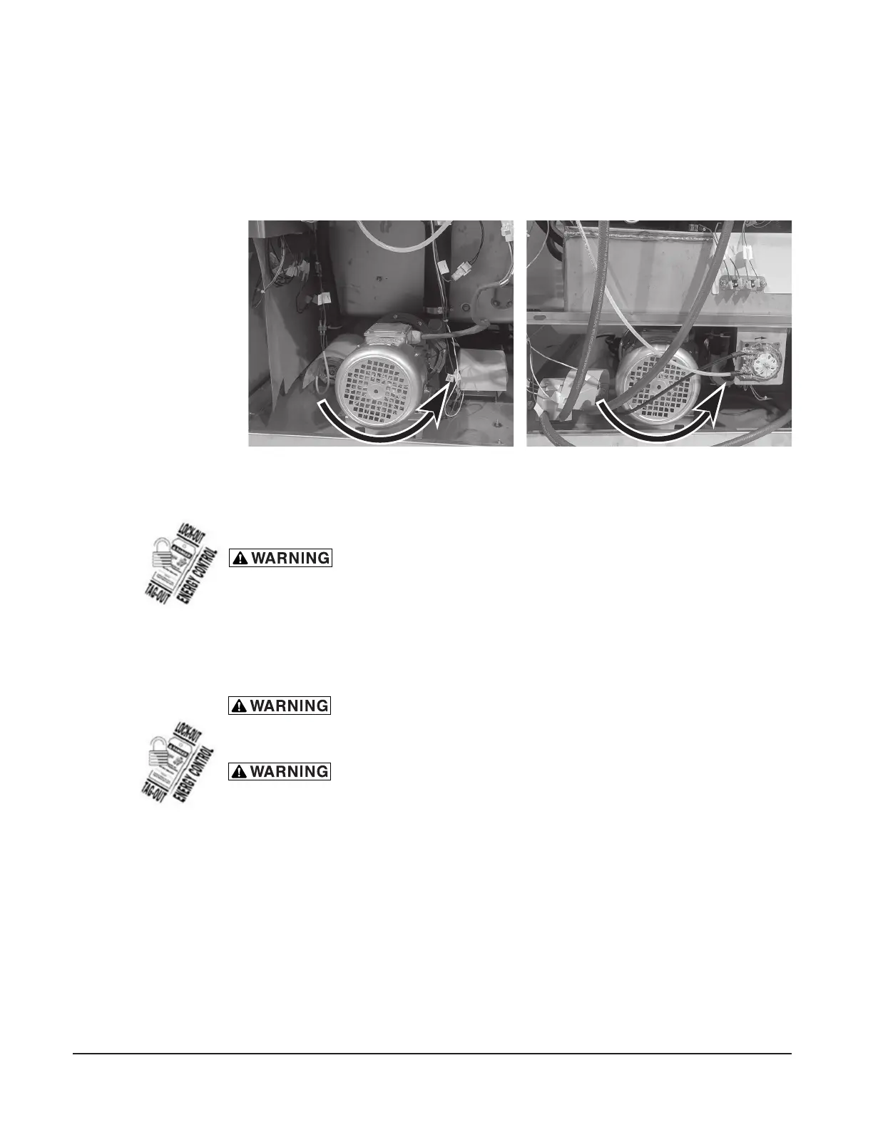 Pump motor 1 – Looking from the right side of the machine, the correct rotation is