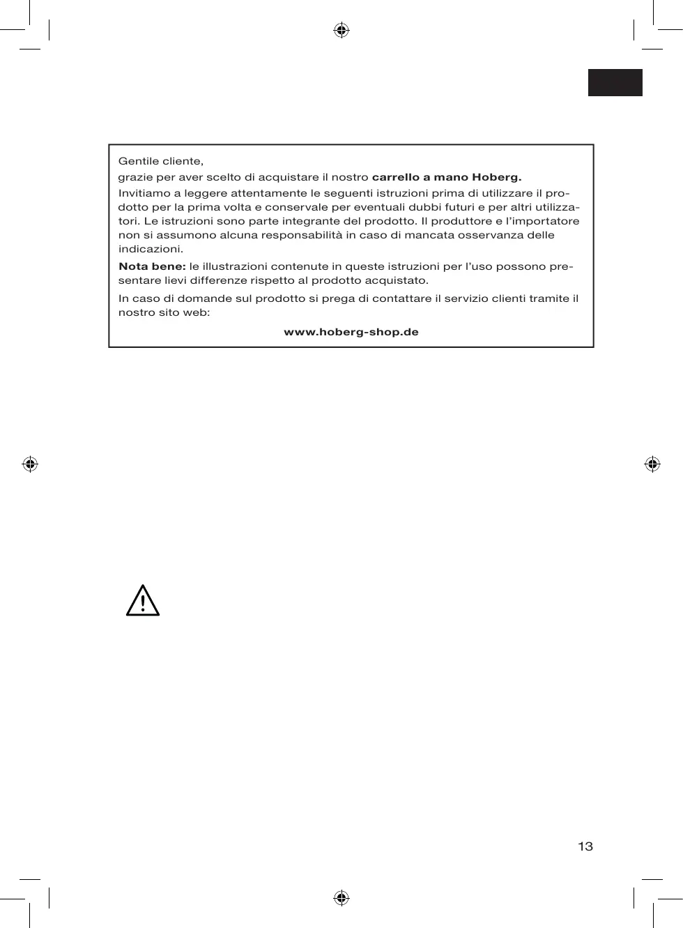 grazie per aver scelto di acquistare il nostro carrello a mano Hoberg.