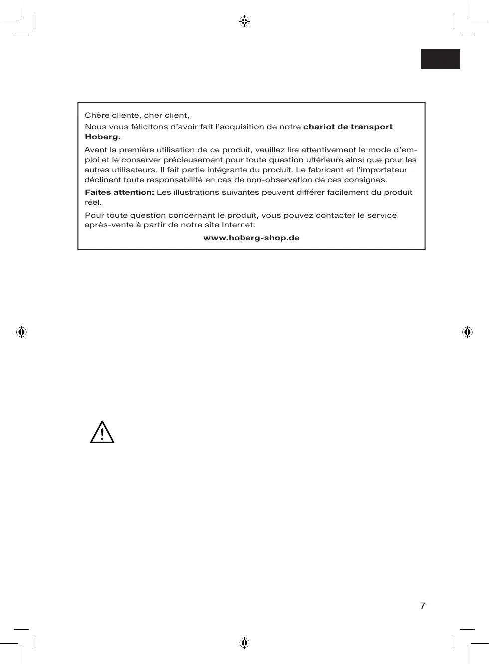Nous vous félicitons d’avoir fait l’acquisition de notre chariot de transport