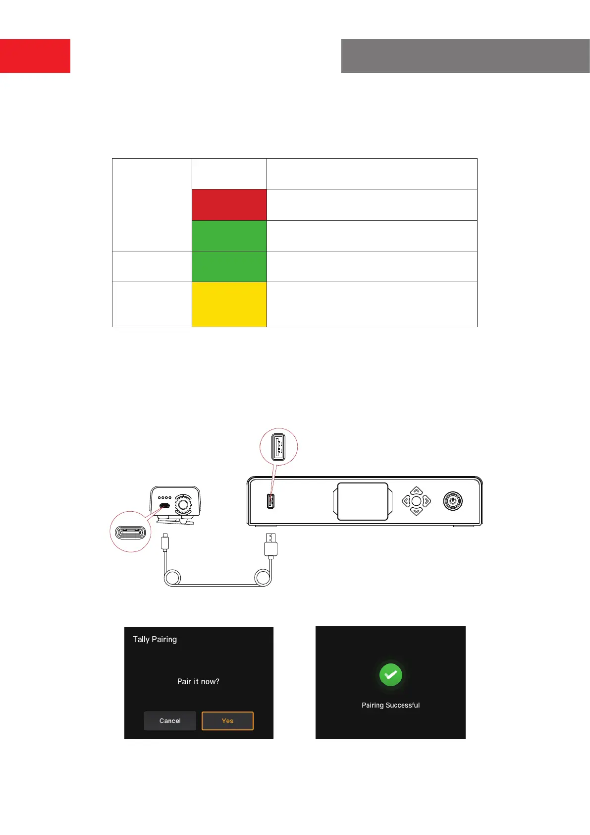• Use a USB-C to USB-A cable to connect the Tally light to the Tally box.
