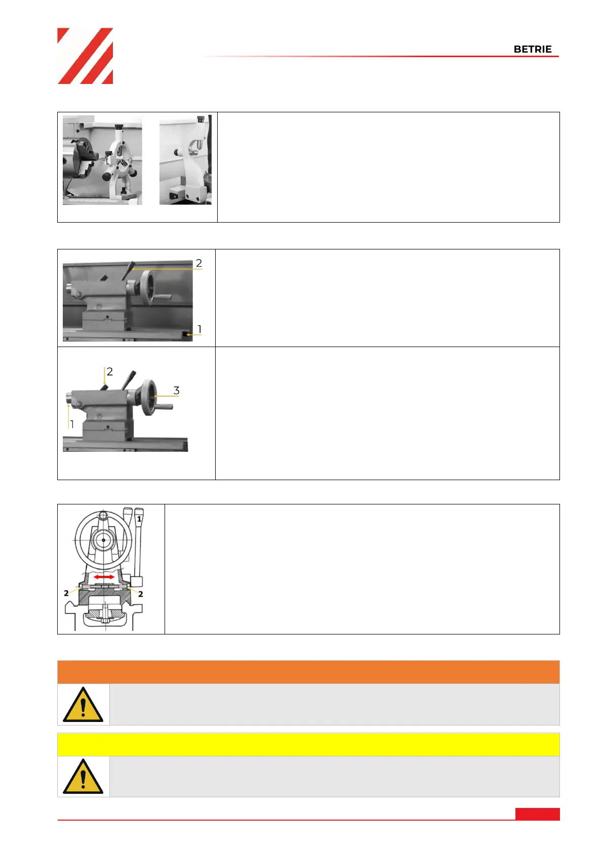 Lösen Sie dazu den Reitstock-Klemmhebel (1) und die Einstellschrauben (2)