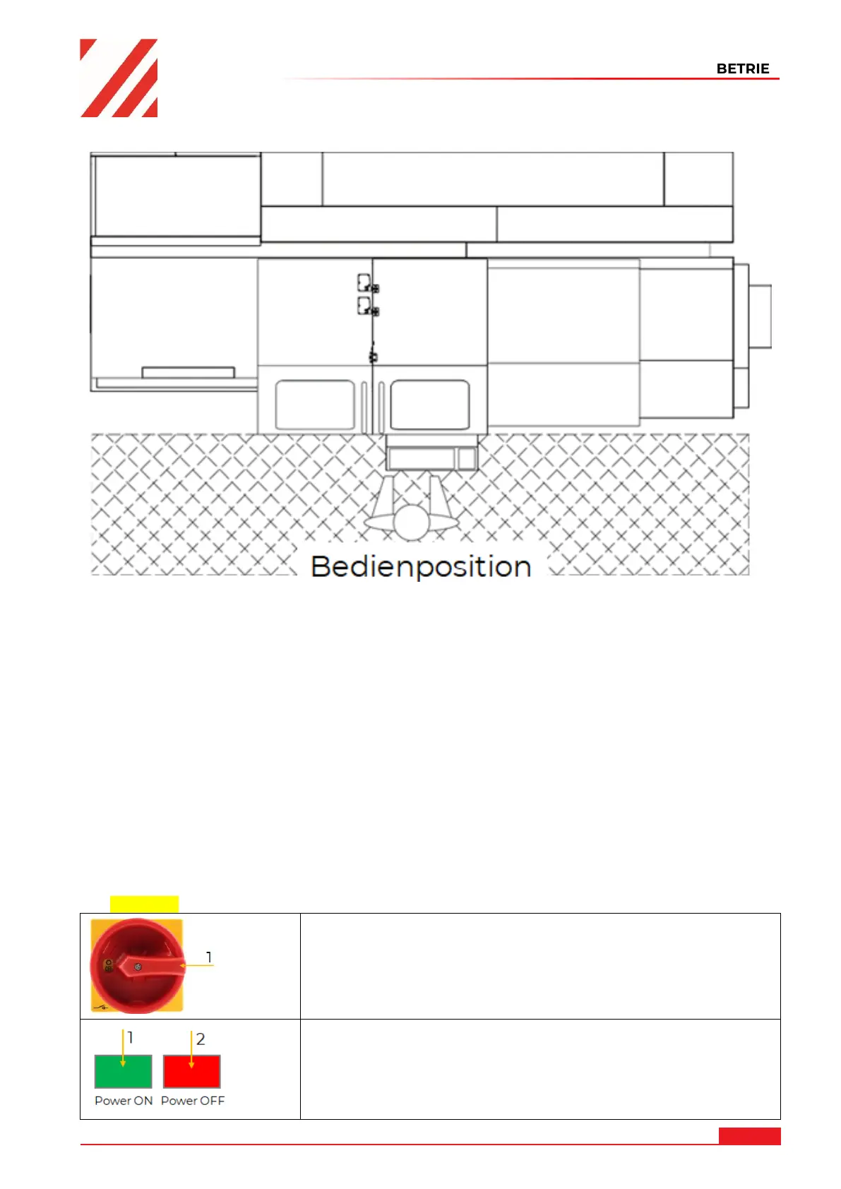 Beim Einschalten des Hauptschalters muss der Bediener prüfen, ob die