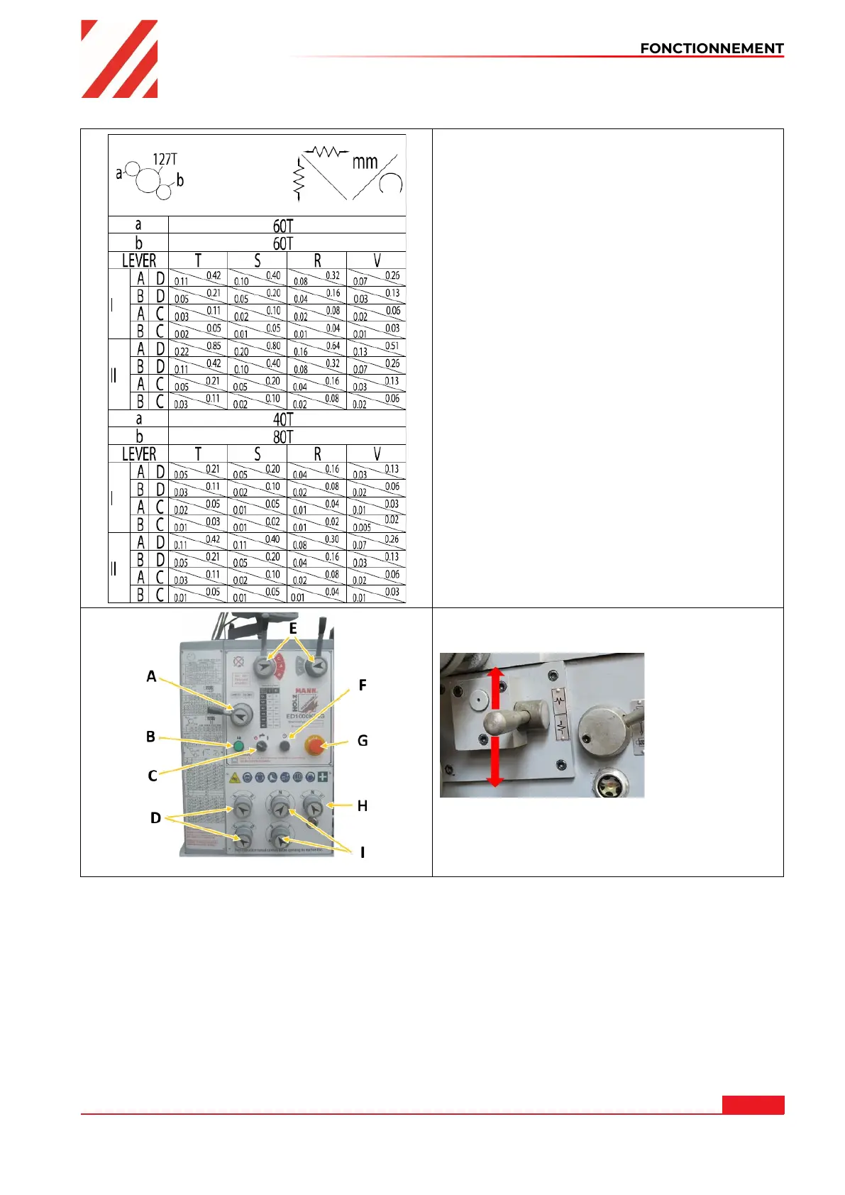 filetage (filetage à gauche/droite). Le pas peut être réglé avec les sélecteurs d'avance. Le levier