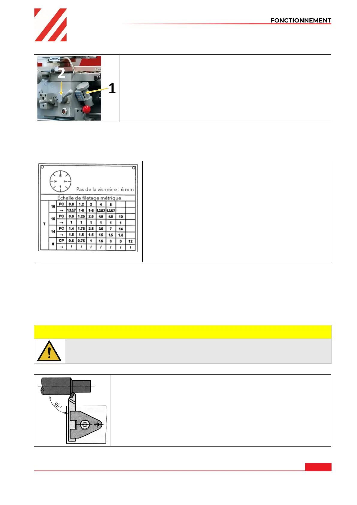 pas de filetage. La position verticale du cadran de réglage du filetage est modifiée selon les
