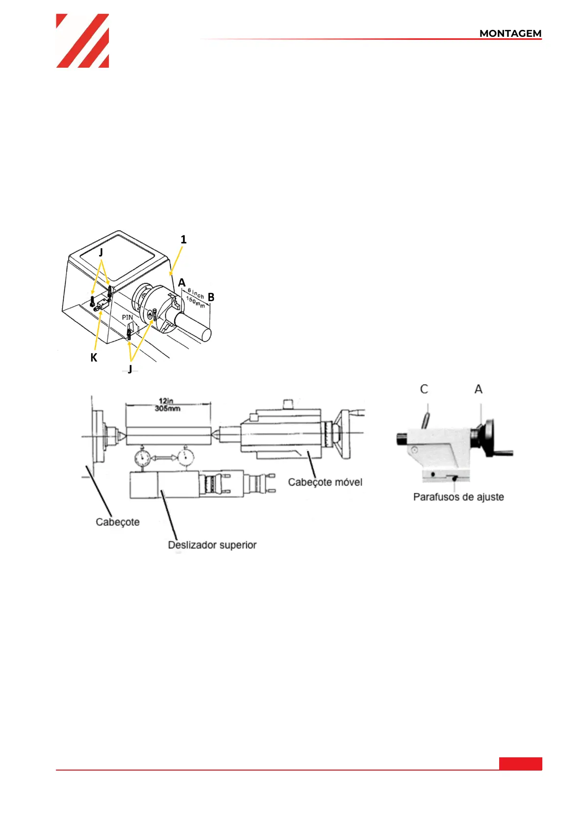 cabeçote móvel (A) e reajustá-la usando os dois parafusos de ajuste. Repita o processo até que