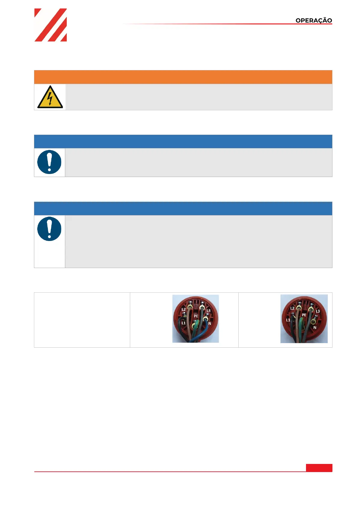 As máquinas operadas com corrente trifásica devem ser sempre ligadas com pelo