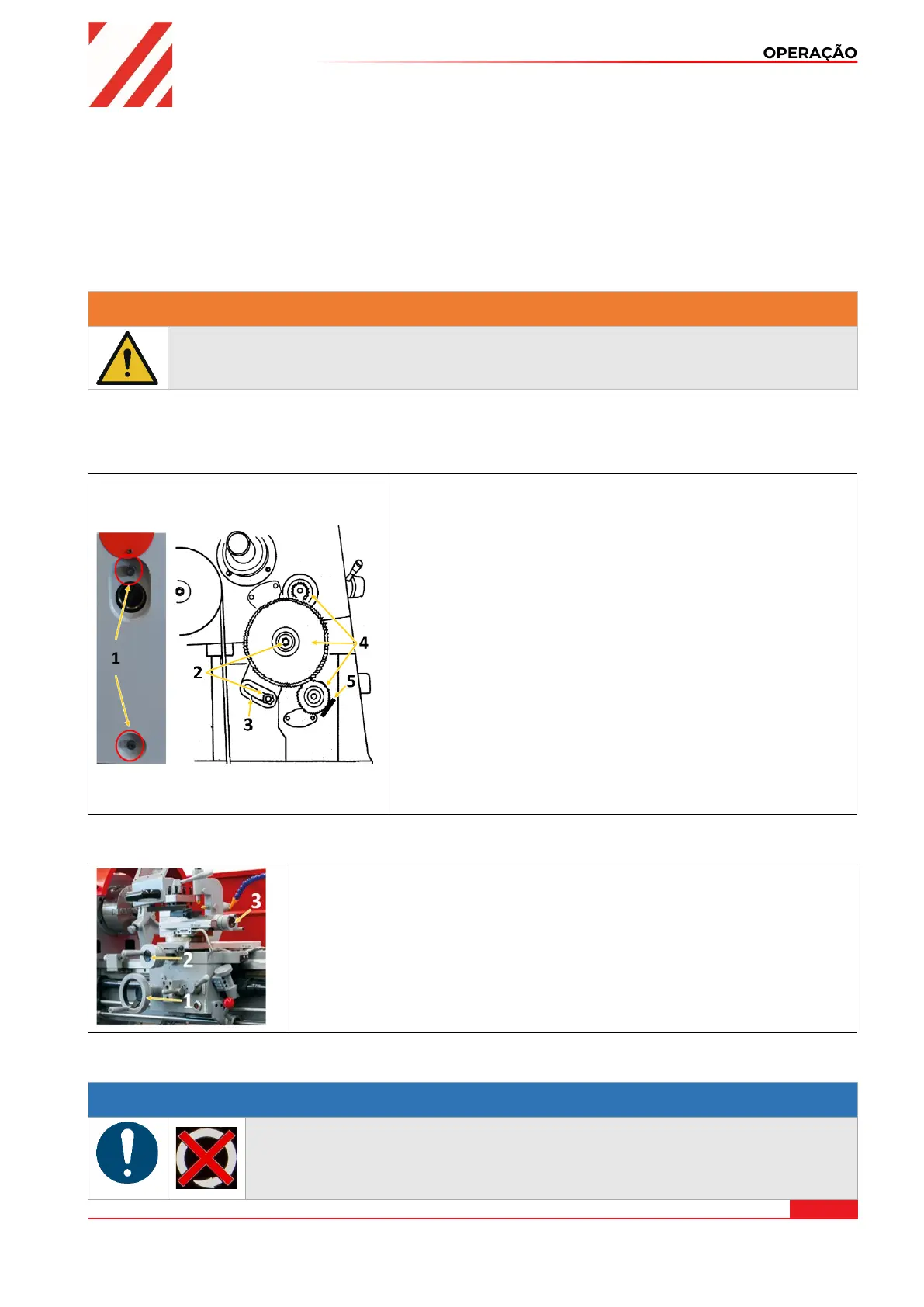 caso de avanços ou passos da rosca especiais, as rodas dentadas necessárias devem ser mudadas.