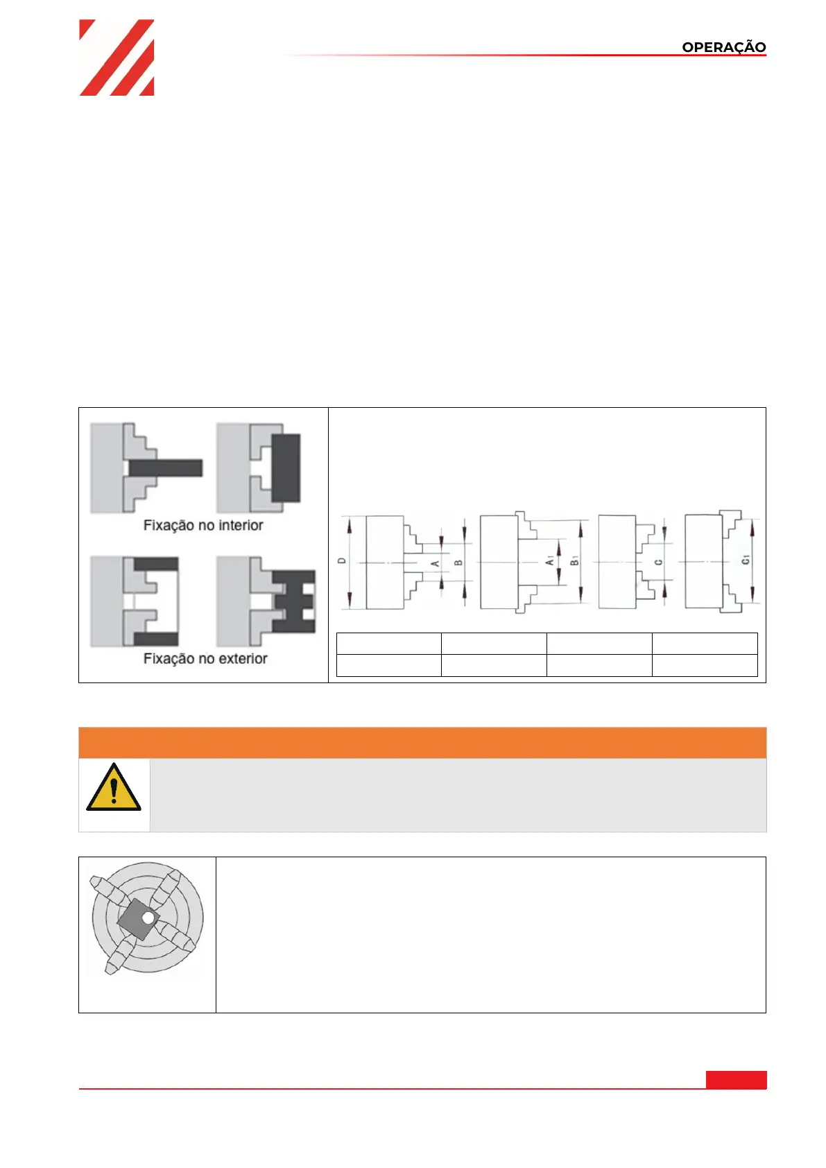 Utilize o mandril de 4 mandíbulas apenas para operações de viragem a baixa