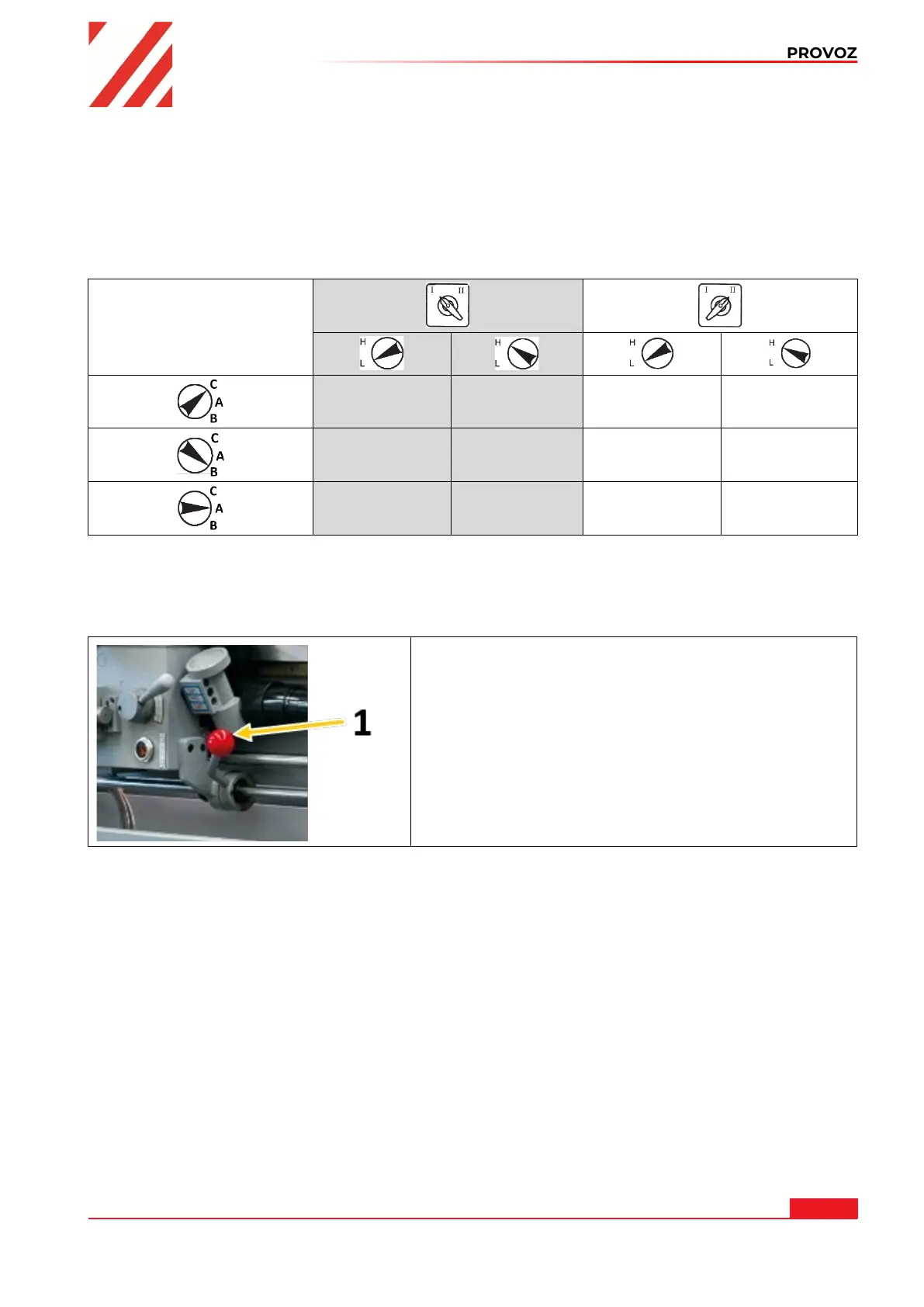 Otáčky vřetena se nastavují oběma ovládacími páčkami na vřeteníku a spínačem motorových