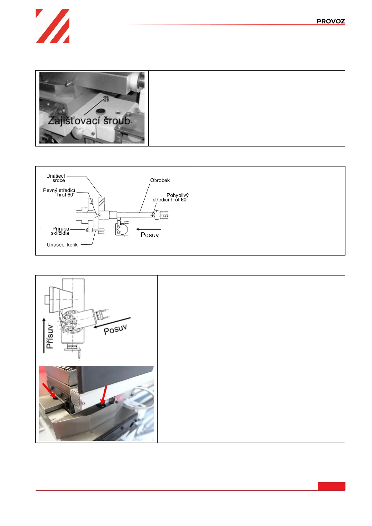 3. Horní saně opět zajistěte.