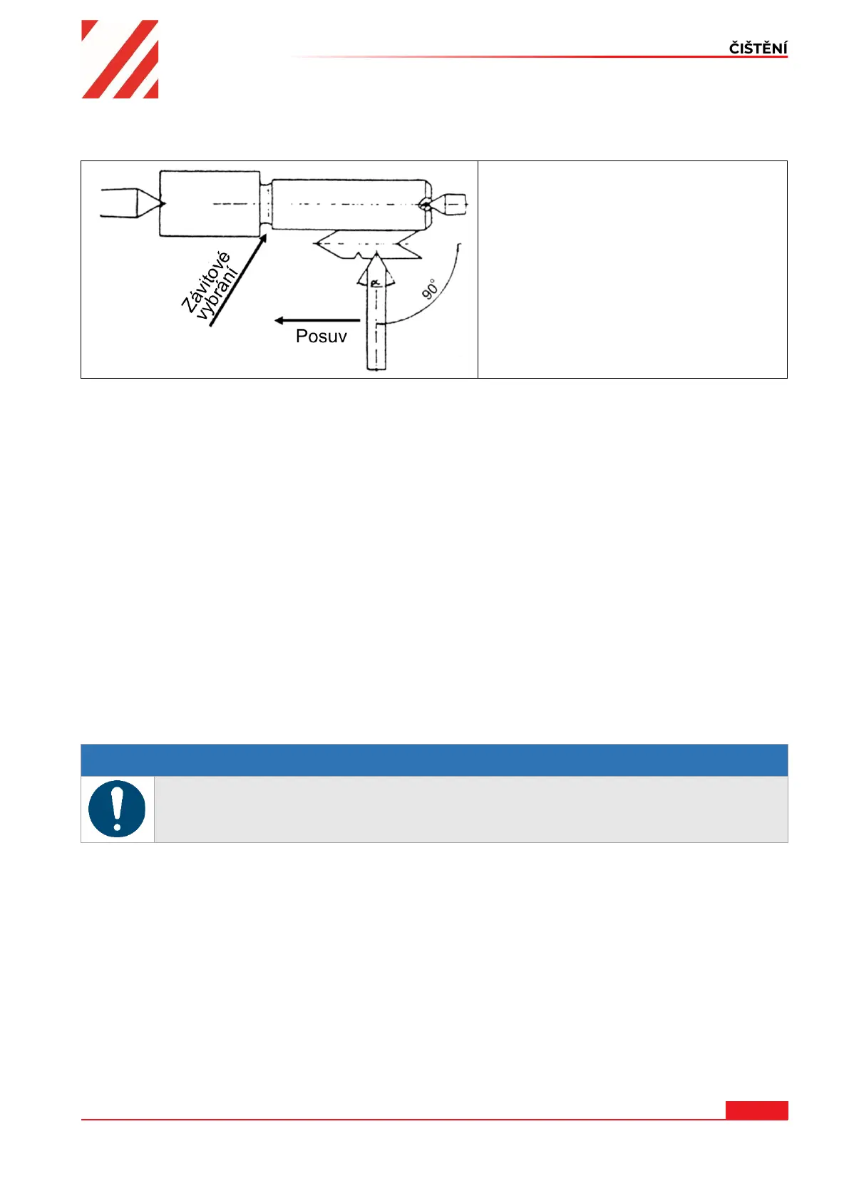 • Průměr obrobku musí být osoustružen na průměr požadovaného závitu.