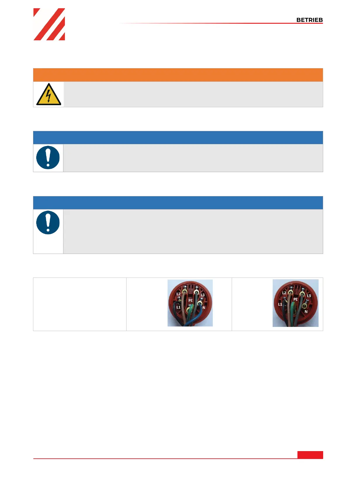 wurde. Gegebenenfalls müssen Sie zwei der drei Phasen (L1/L2 oder L1/L3) tauschen!