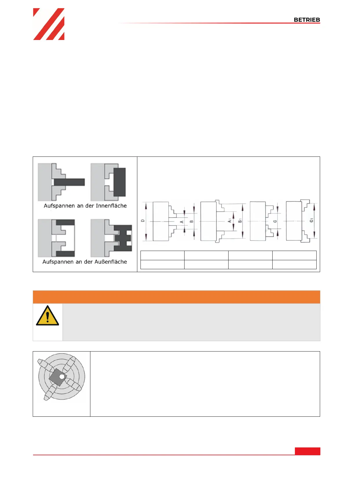 Verwenden Sie das 4-Backenfutter nur für Dreh-Operationen bei geringer