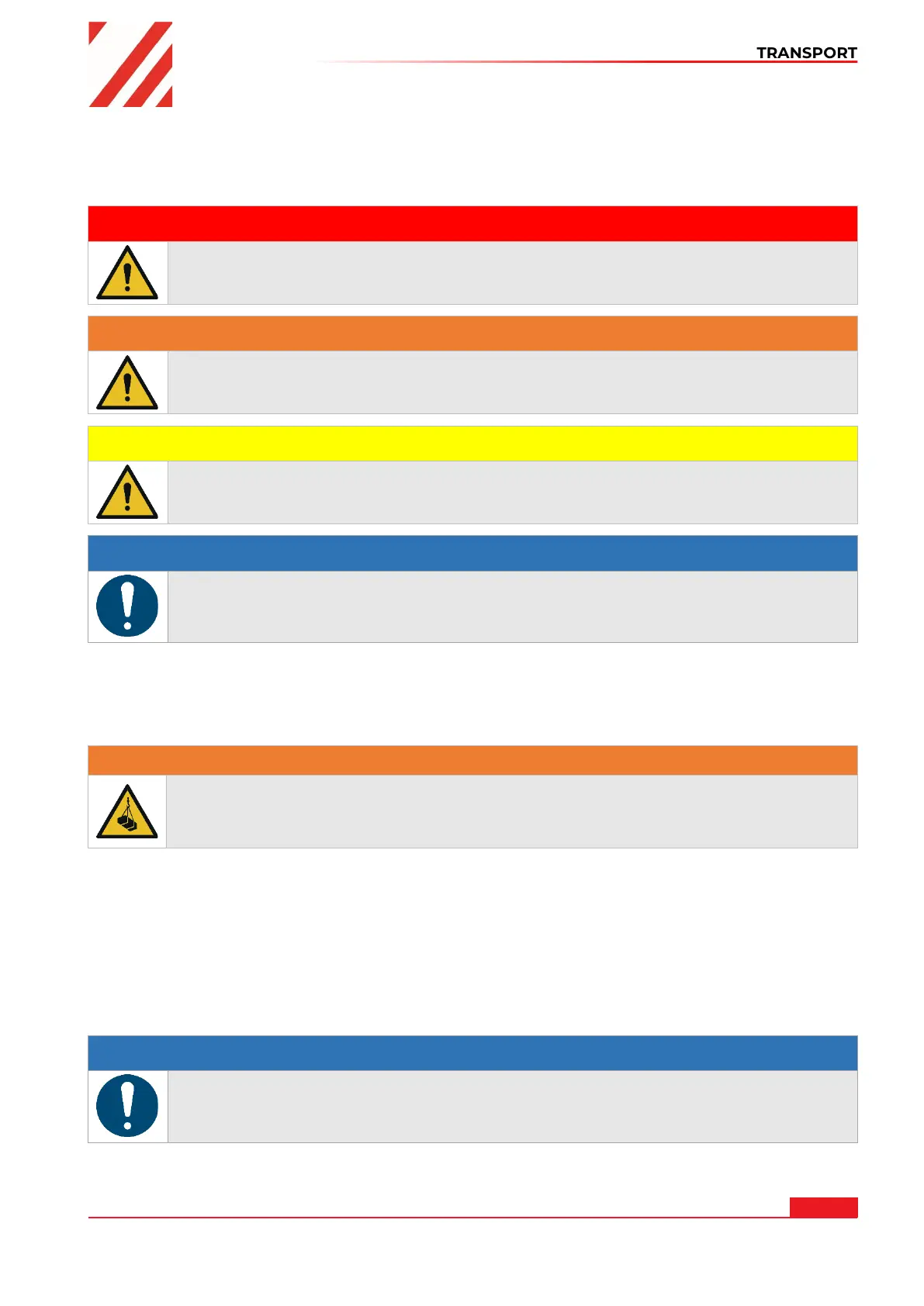 regarding centre of gravity, attachment points, weight, means of transport to be used and the
