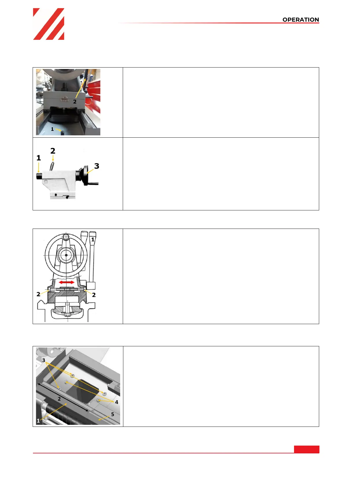 Loosen the tailstock clamping lever (1) and the adjusting screws