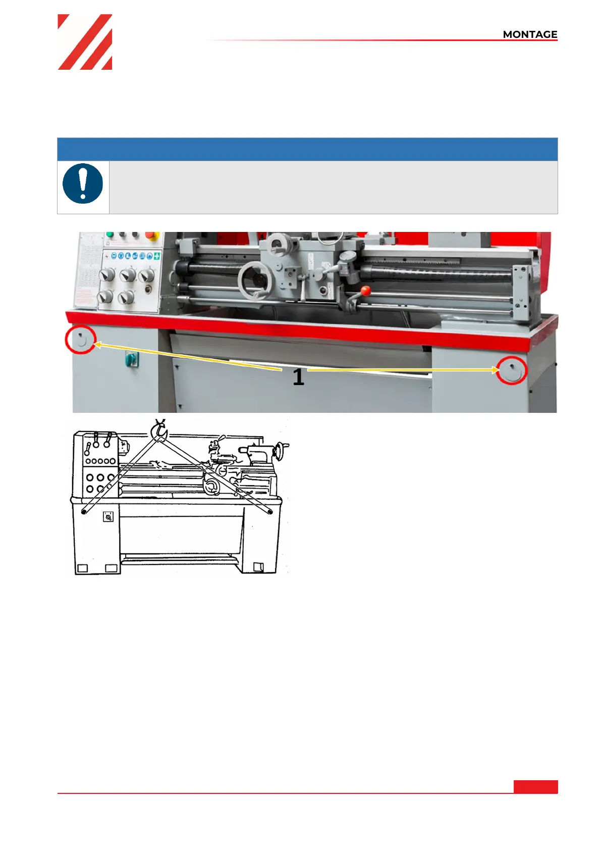 par les élingues de levage lors du levage. Ne jamais soulever la machine par la broche !