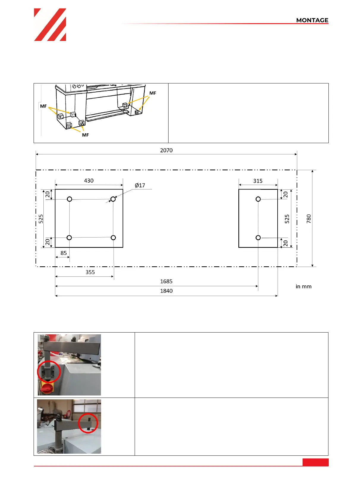 2. Ensuite, aligner la machine et serrer les vis (1).