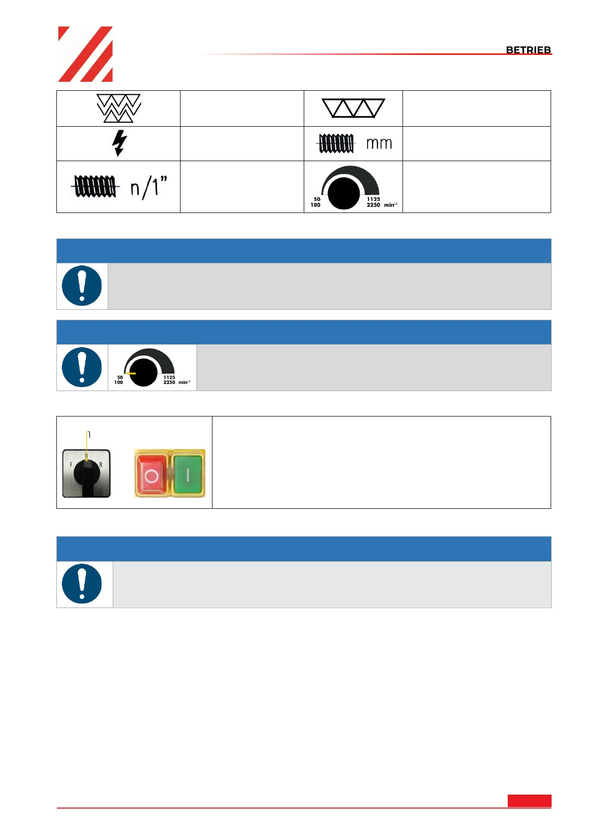 Roten AUS-Taster (0) drücken und Wahlschalter Drehrichtung