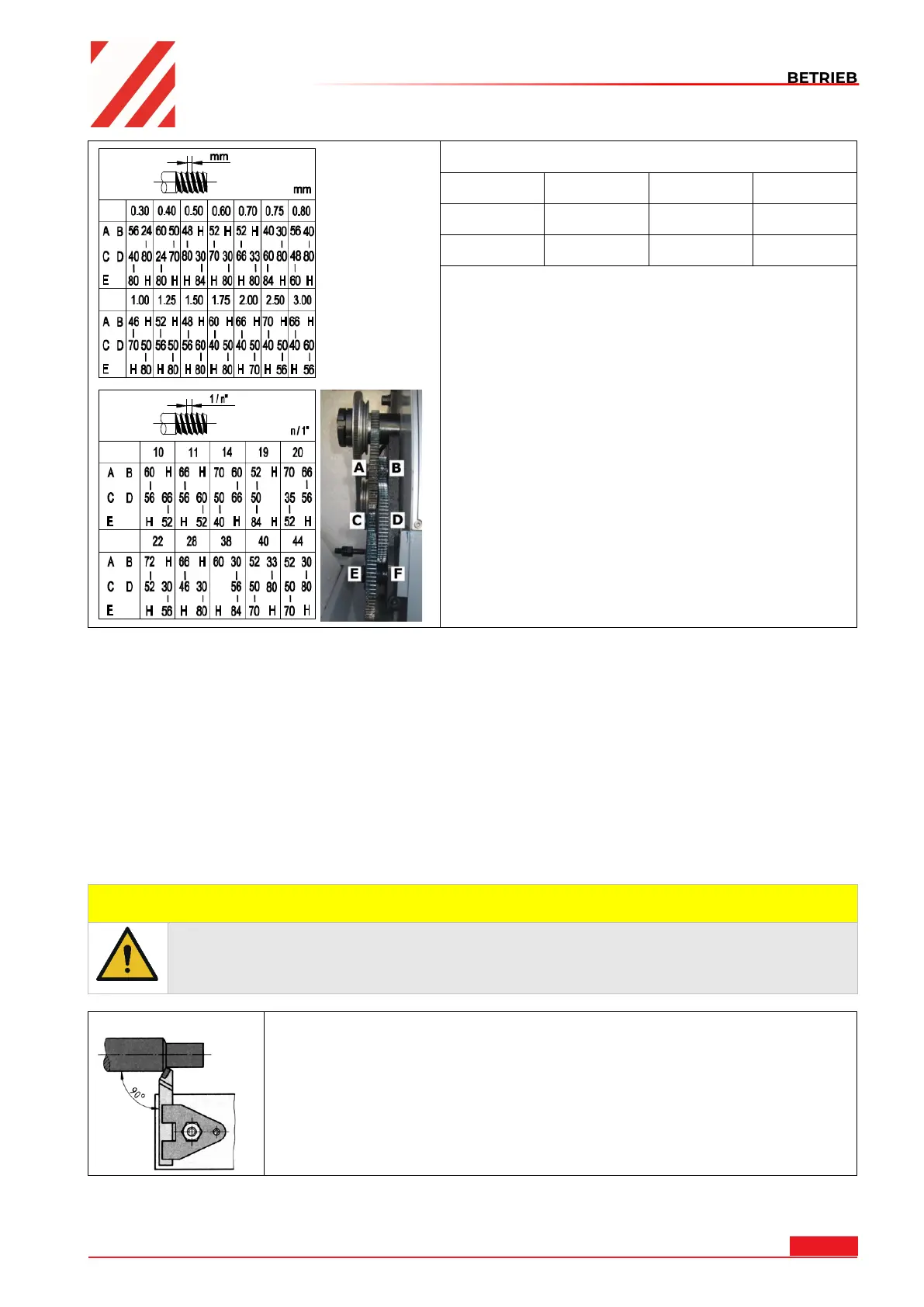 werden. Die Steigung können Sie mit den Wechselzahnrädern festlegen. Einrückhebel