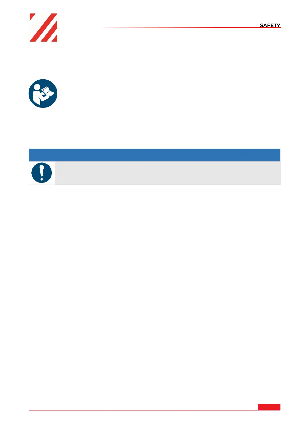 The machine is designed for operation by one person. The physical and mental aptitude as well as