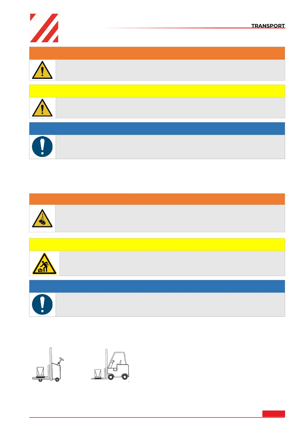 bearing capacity and perfect condition. Secure the loads carefully. Never stand under