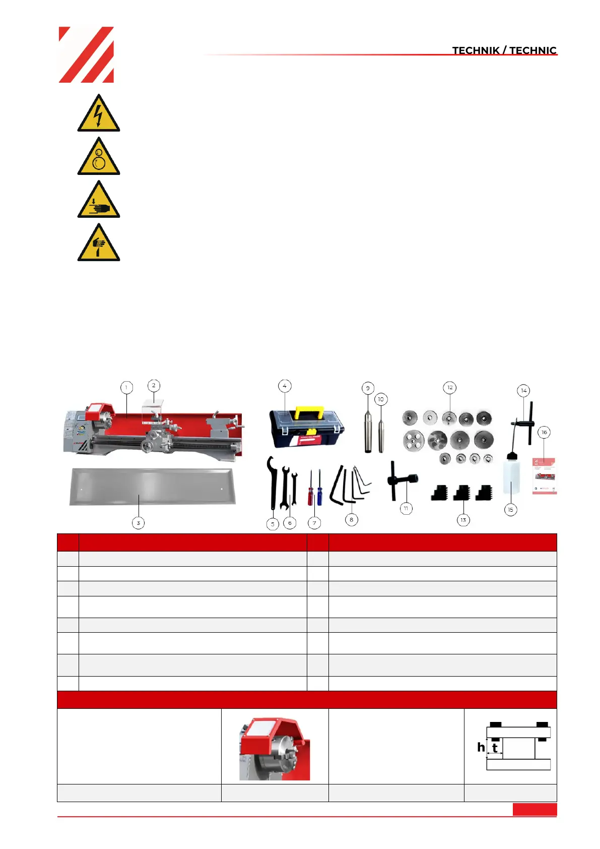 3 Späne-Auffangblech / chip collecting tray 11 Werkzeughalterschlüssel / tool post key