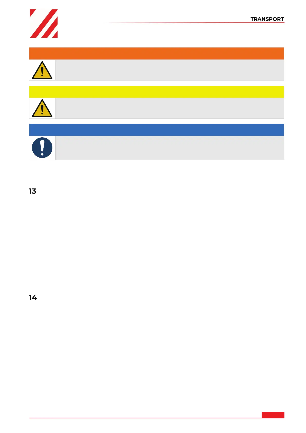 regarding centre of gravity, attachment points, weight, means of transport to be used and