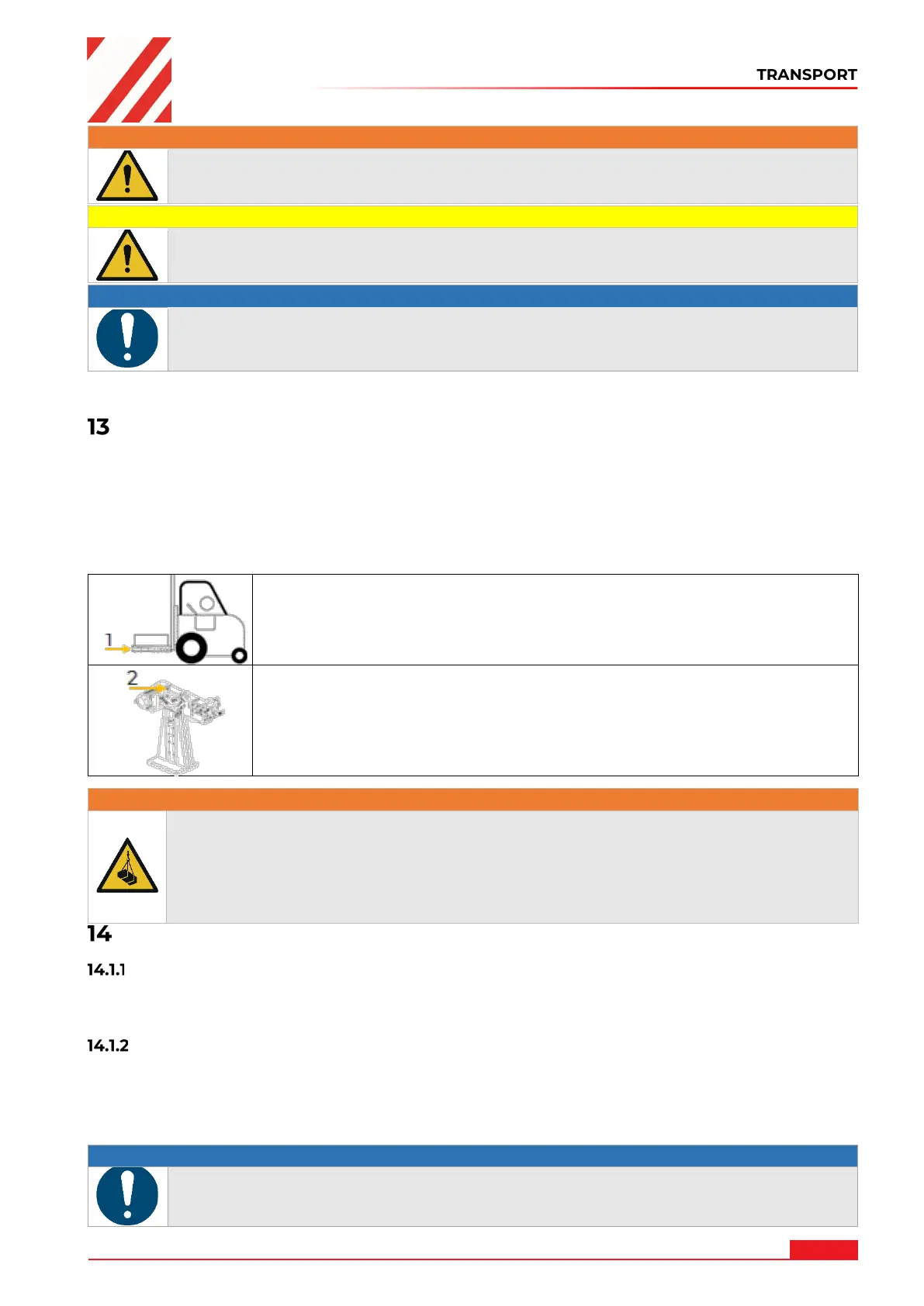 lifting points, weight, means of transport to be used as well as the prescribed transport position