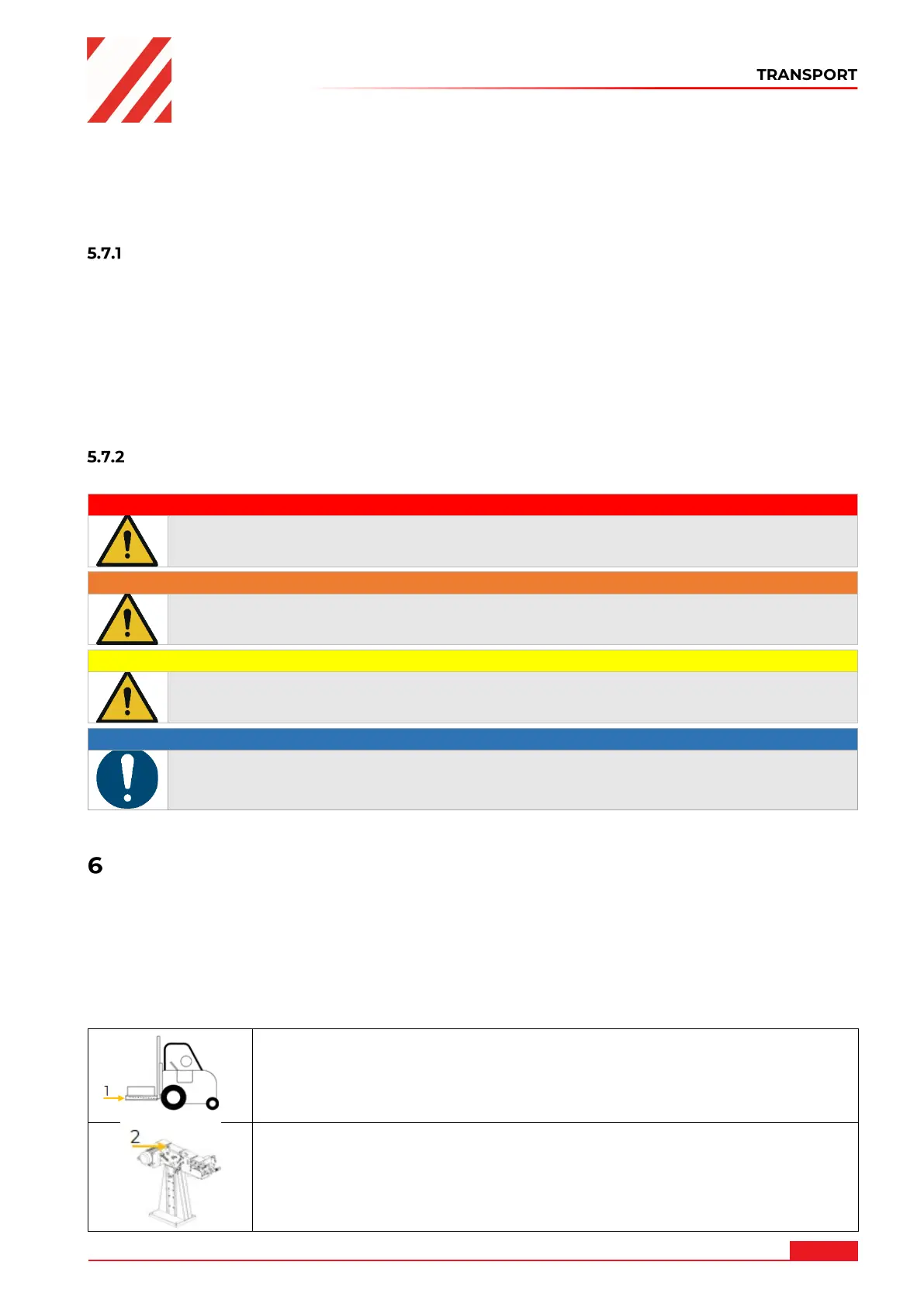 • Zum Heben/Transportieren der Maschine die Gabel des Gabelstaplers in