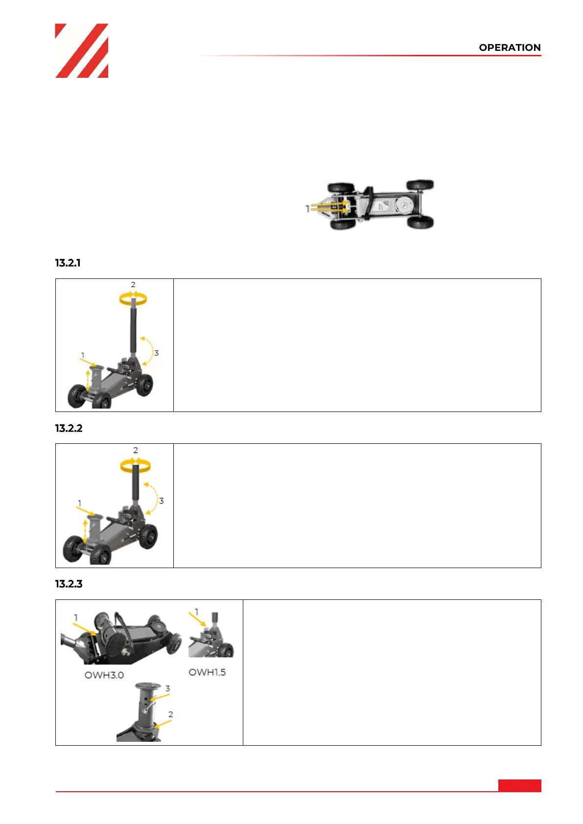 Raise the vehicle to the desired height by moving the lifting rod up