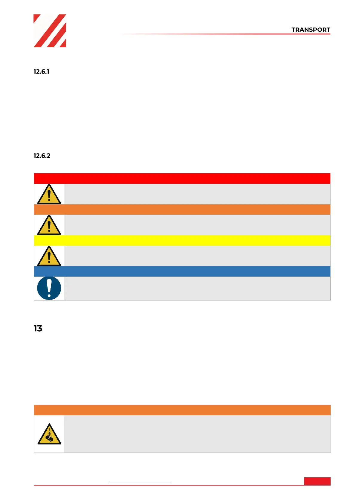 used as well as the prescribed transport position etc. Ensure that the selected lifting equipment