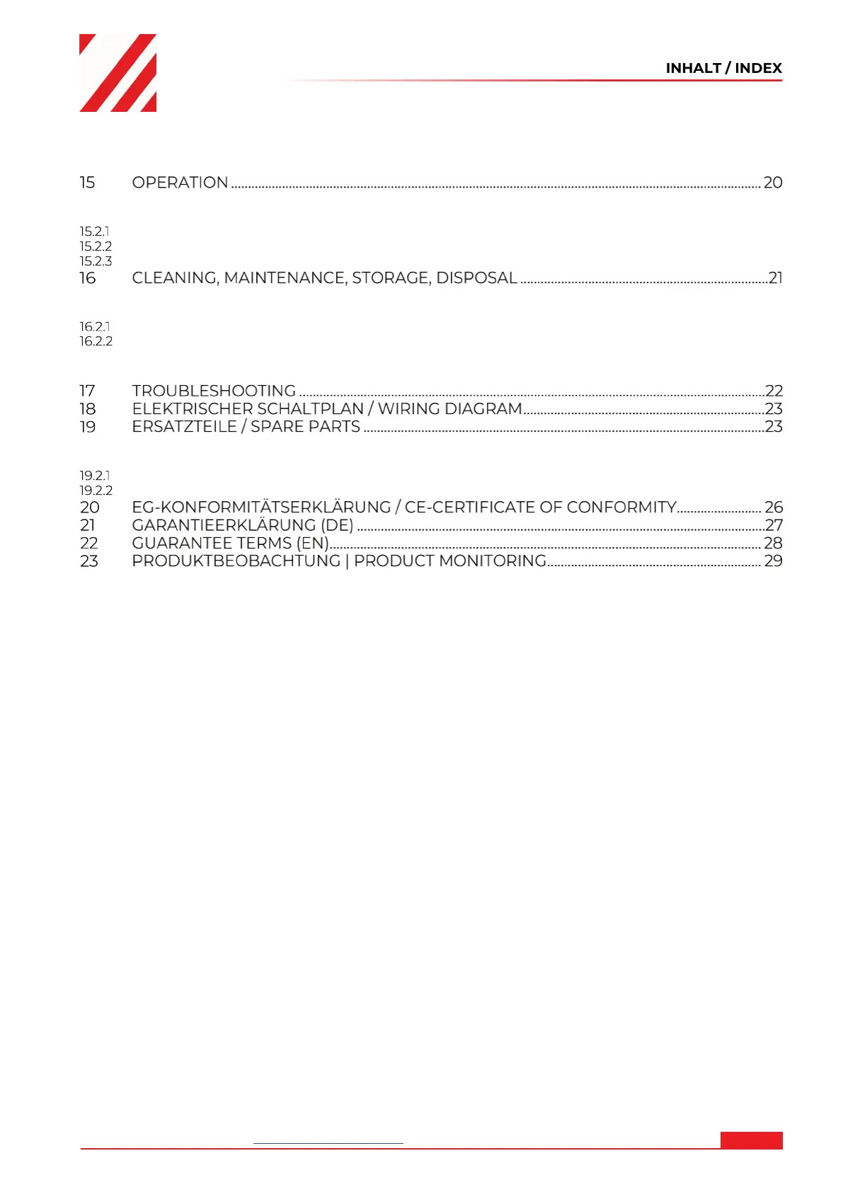 19.1 Ersatzteilbestellung / Spare parts order .................................................................................................................... 23