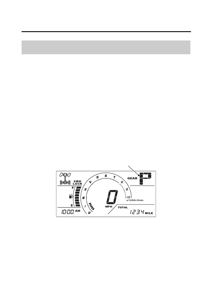 The indicator displays P for park, N for neutral, R for reverse, H for