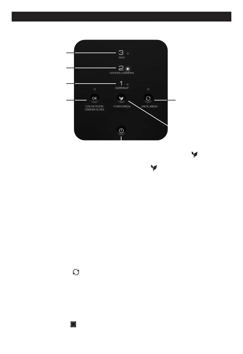 Bouton de réglage d’épuration – Après avoir allumé le purificateur d’air, utilisez le bouton ( ) pour