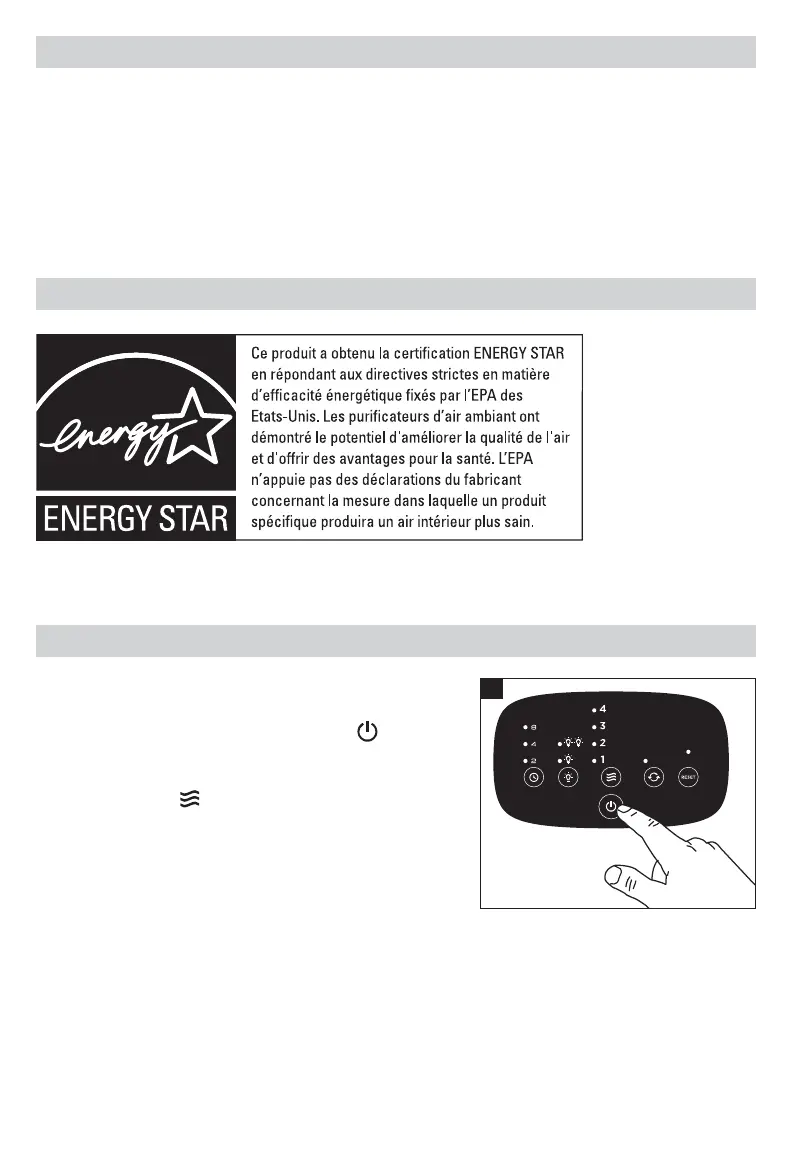 L’efficacité énergétique de ce modèle certifié ENERGY STAR est mesurée selon un ratio entre le débit d’air purifié