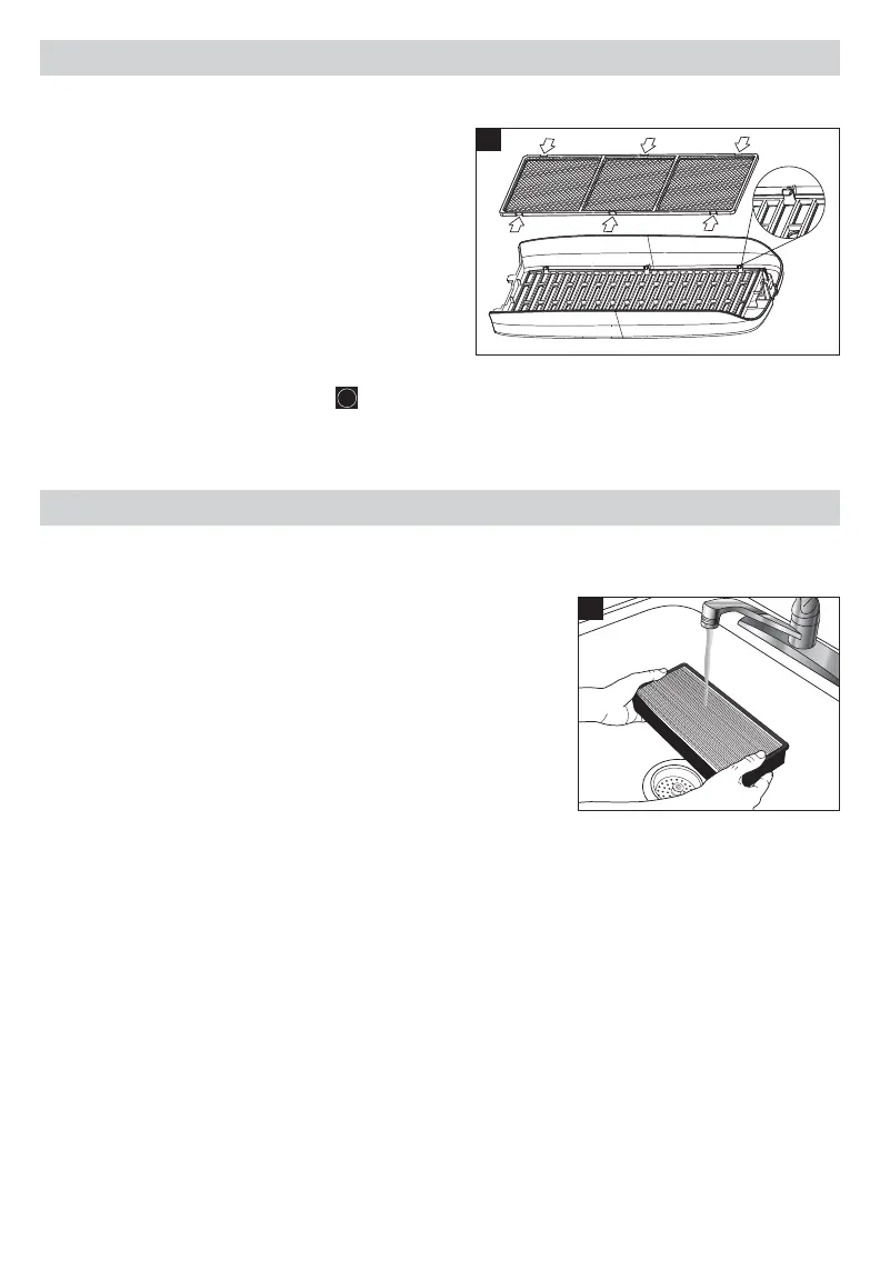 lorsque vous aurez enlevé préfiltre à mailles lavable. Il doit être placé sous les languettes sur les côtés de la