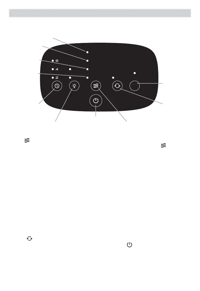 Botón de Oscilación – Para ayudar a circular aire más fresco y limpio a través de la habitación, esta unidad