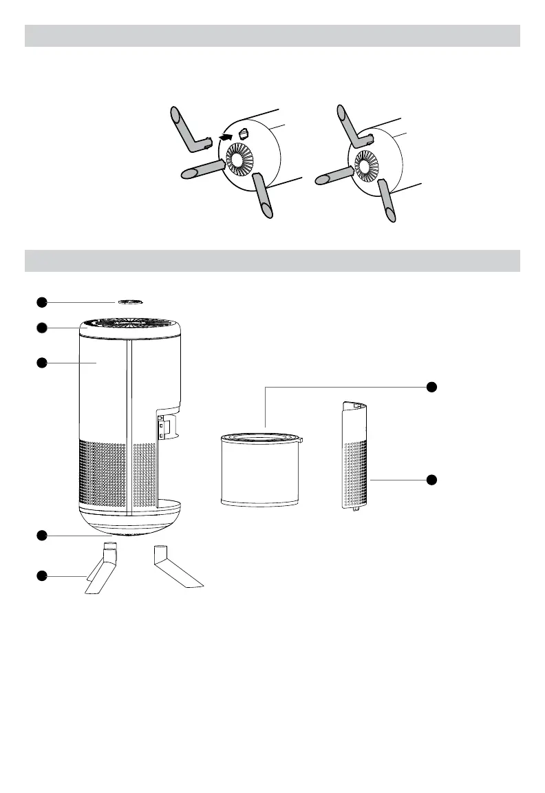 purificateur d’air en veillant à les aligner de façon qu’ils pointent vers l’extérieur. Insérez les pieds à fond jusqu’à