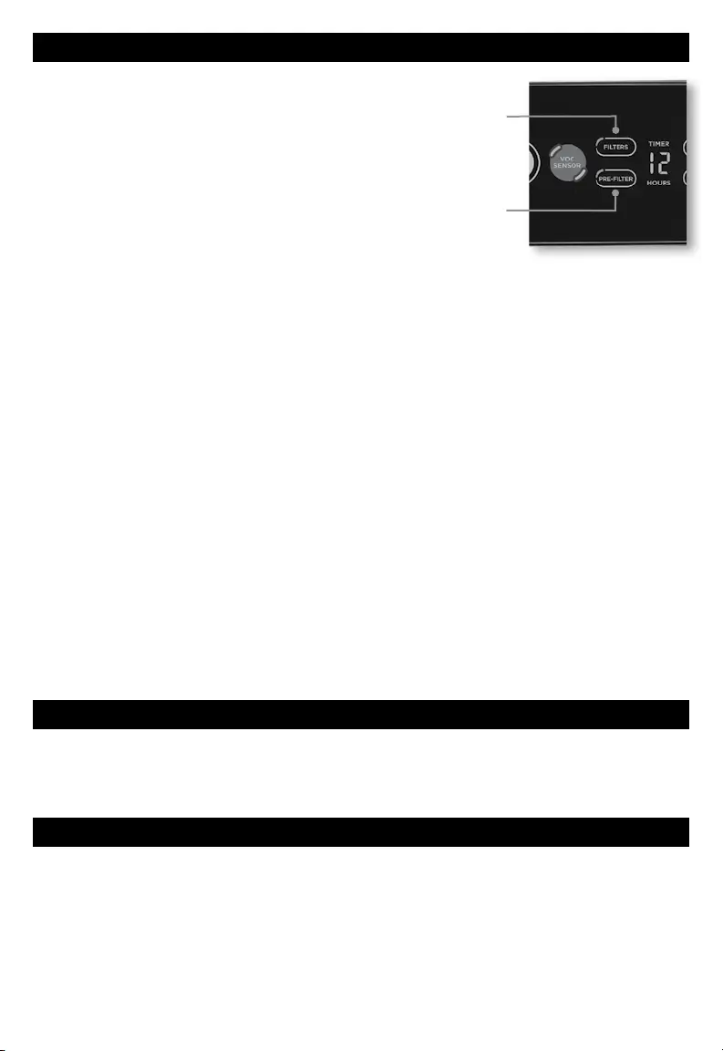La luz “Filtros” o “Prefiltro” se iluminará cuando los filtros HEPA y/o el prefiltro
