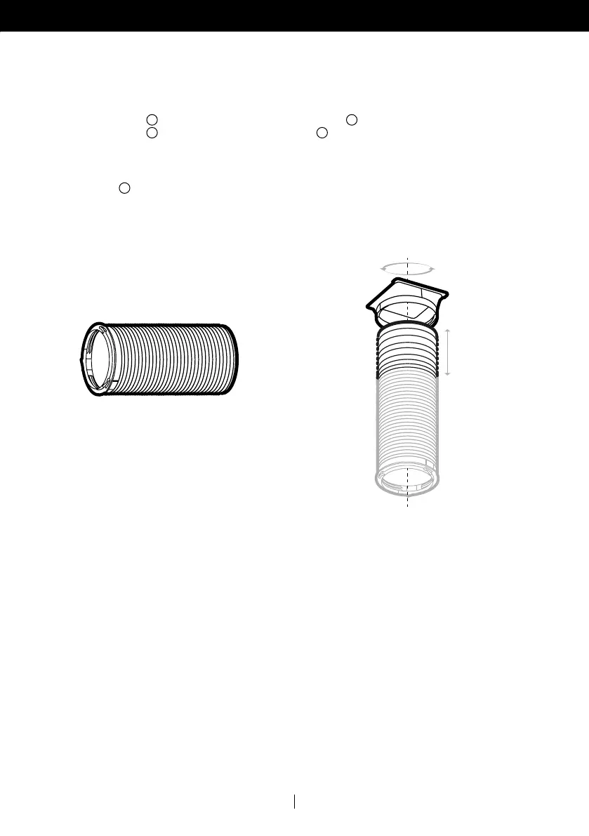 Expand the unassembled end of the Exhaust Hoses 4" to 8", then carefully thread the Hose