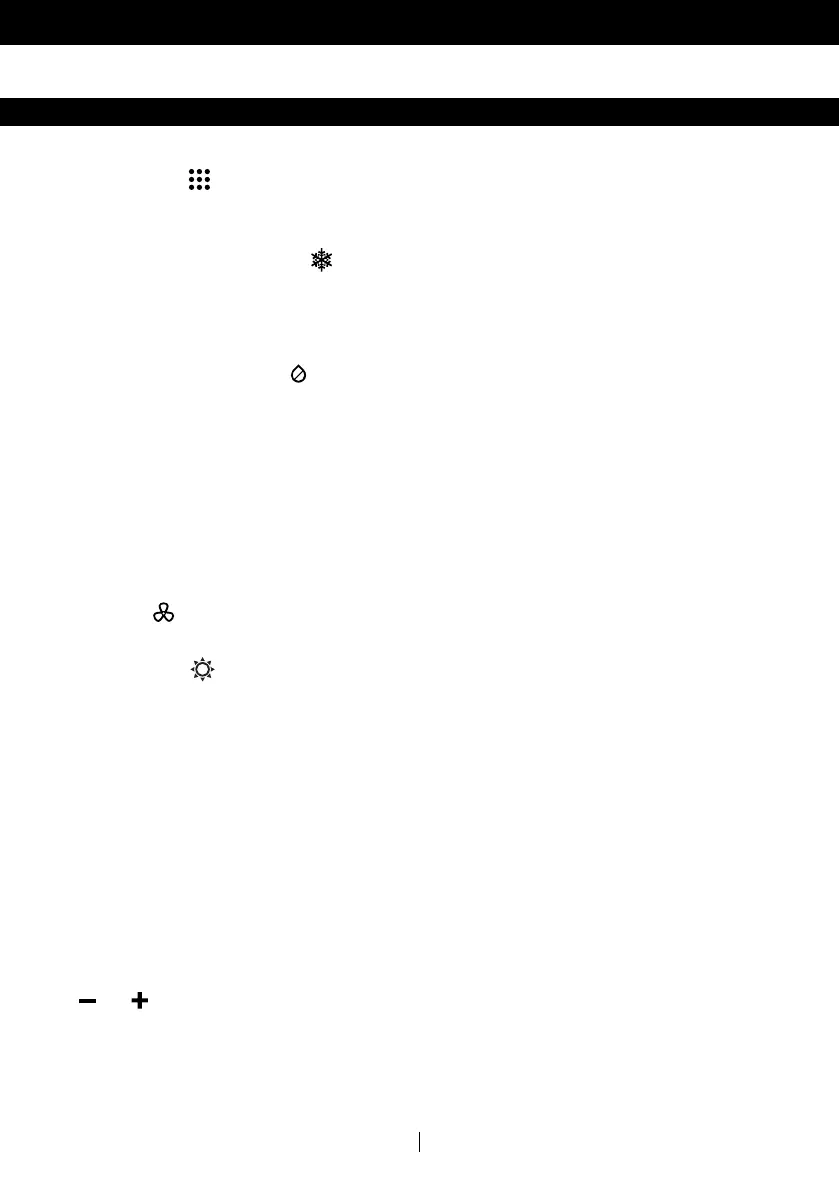Note: Temperature cannot be adjusted in Fan and Dehumidify modes.