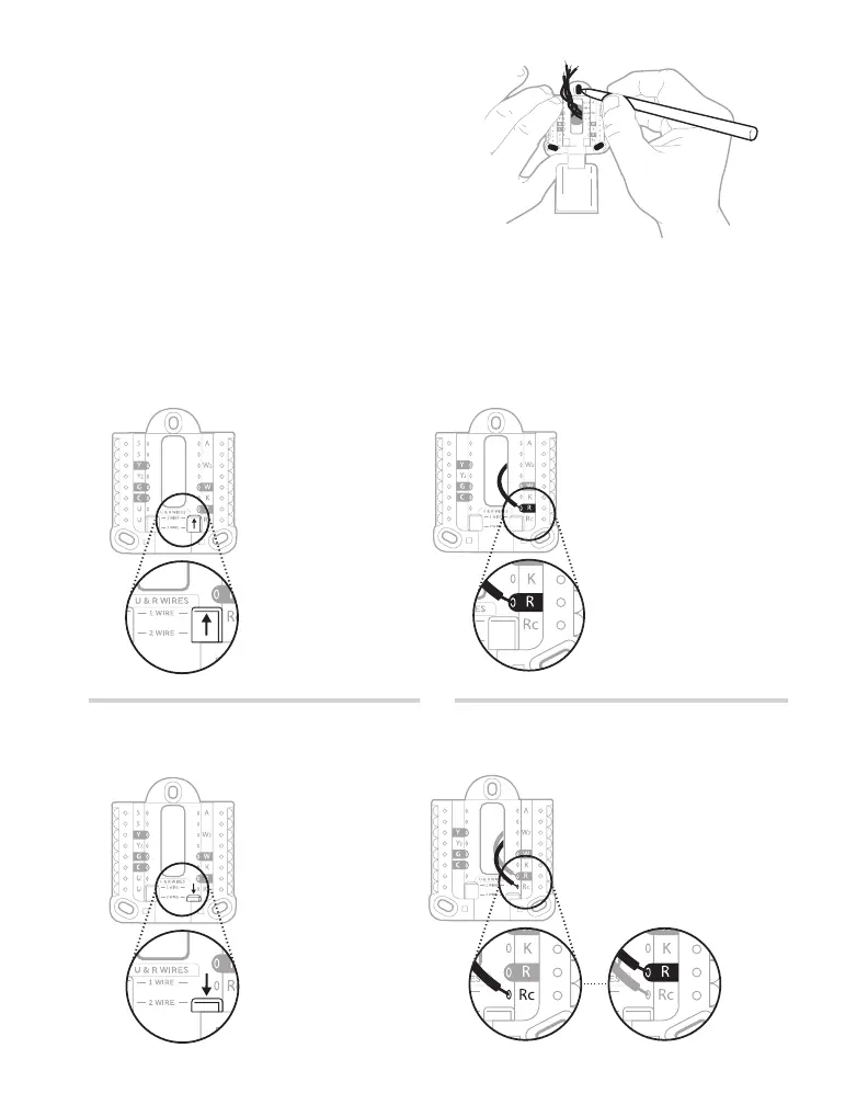 Inserte los cables en los orificios interiores de las terminales del UWP. Las