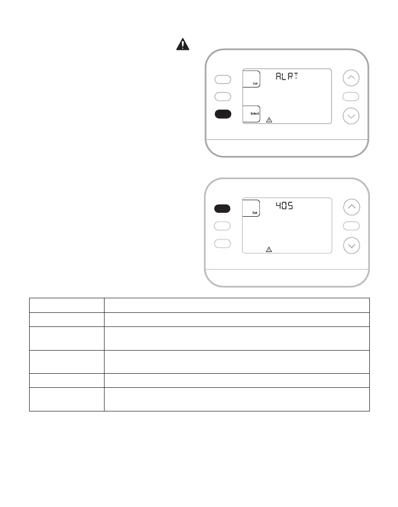 405 Les piles du thermostat sont faibles. Remplacez les piles.