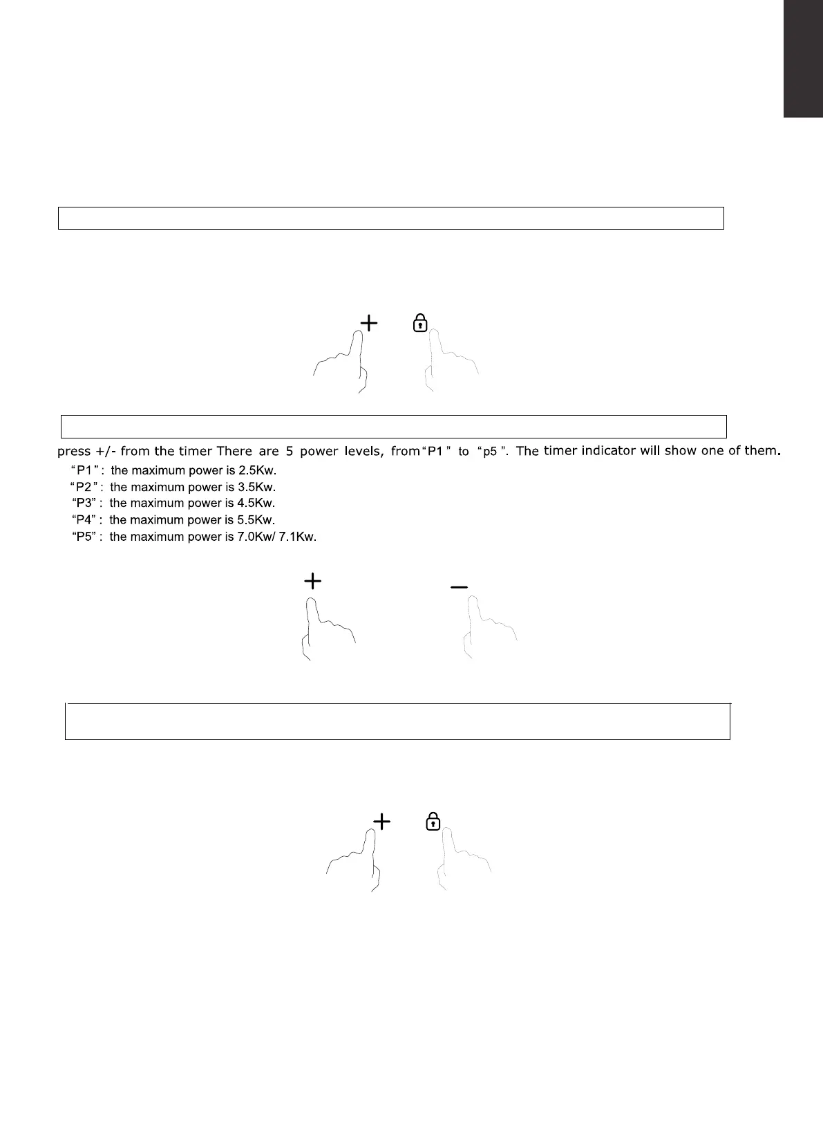 The timer indicator will show “ P5“ which means power level 5. The default mode is on 7.0Kw/ 7.1Kw.