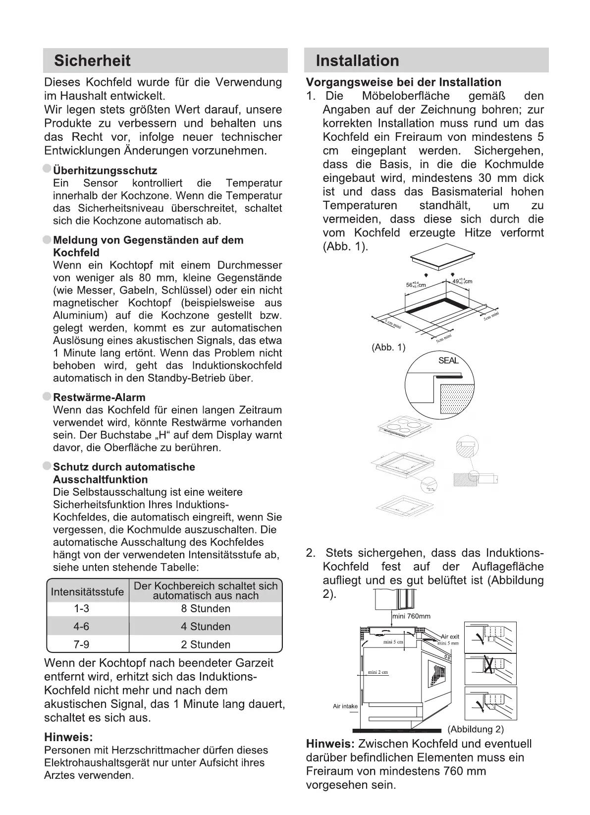 nicht unter der Theke installiert ist