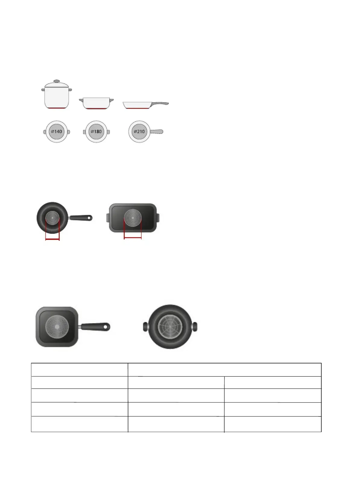 En función de las medidas de la zona, puede utilizar ollas de diferentes diámetros, como se