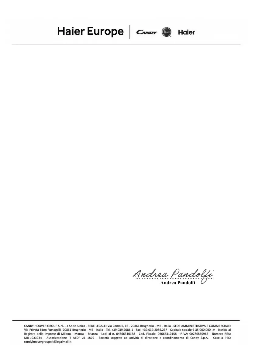 Signed for and on behalf of Candy Hoover Group S.r.l.